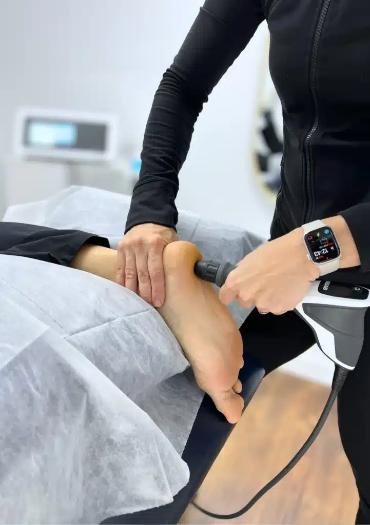 During the session, your physiotherapist first applies a gel to the skin. Then, using a hand-held device, they deliver radial pressure waves directly into the affected area. These waves stimulate blood flow, reduce inflammation, and trigger your body’s natural healing processes.