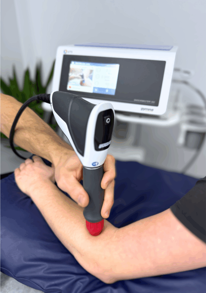 Shockwave Therapy (also called radial extracorporeal shockwave therapy) is a non-invasive treatment that uses acoustic pressure waves to stimulate healing in injured soft tissues. It’s highly effective for both sub-acute and chronic musculoskeletal conditions, especially those resistant to traditional treatment.